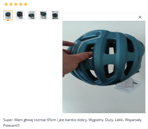 “Super. Mam głowę rozmiar 65cm i jest bardzo dobry. Wygodny. Duży. Lekki. Wspaniały. Polecam!!!”