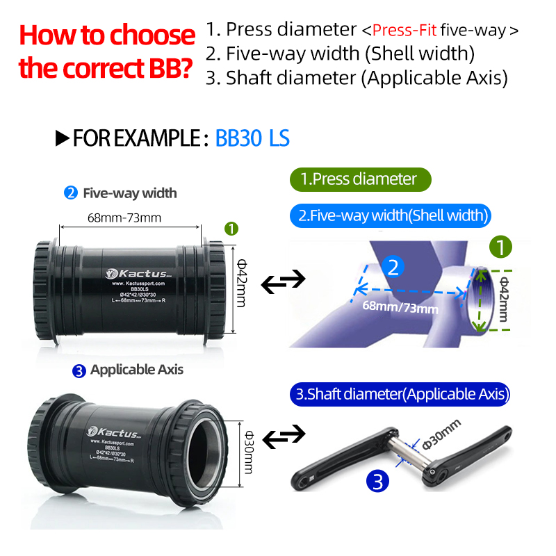 KACTUS BB30-LS Bicycle Bottom Bracket Ceramic Bearing Fit for SRAM 30mm Axis Road Cranksets 68 73mm MTB Press-fit BB Bike parts
