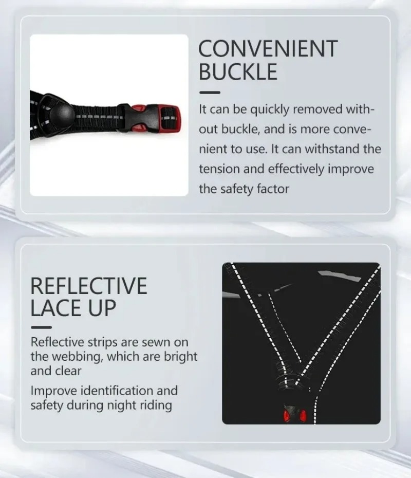 Feature V:Quick and convenient buckle for fast putting on and taking off.