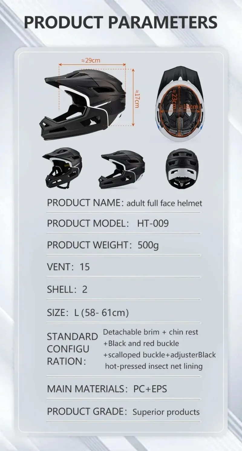 Mtb Cycling Helmet Size L Full Face Helmets Man Bike Cap PC+EPS Integral Casco with Detachable Visor for Off-road Safety Helmet