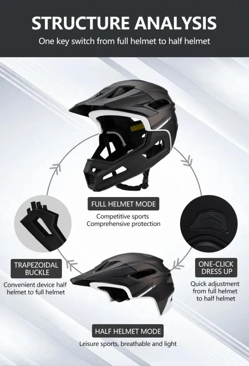 ONE-CLICK DRESS UP:Quick adjustment from full helmet to half helmet