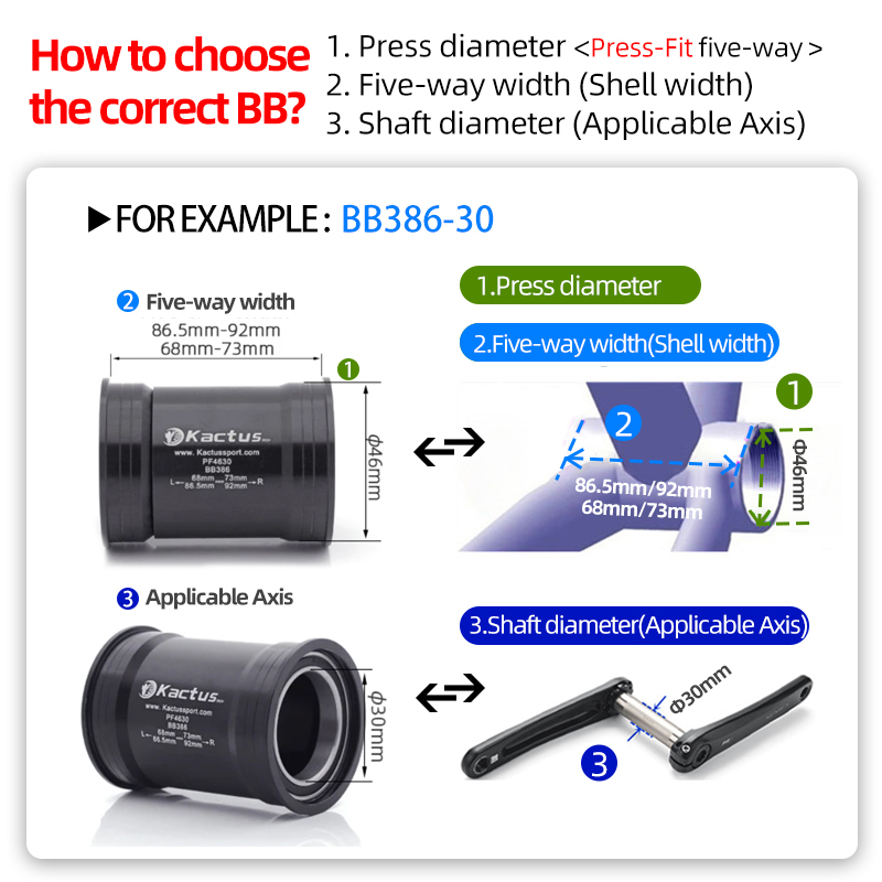KACTUS BB386 Ceramic Bottom Bracket - for 30mm crank - 46mm Pressfit for 86-92mm Shells - Lightweight BB bicycles accessories