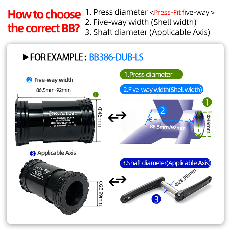 KACTUS BB386 DUB Bottom Bracket Ceramic Bearing BB MTB Press Fit 46mm Fit for Central Movement SRAM DUB Crankset 29mm Bike Parts