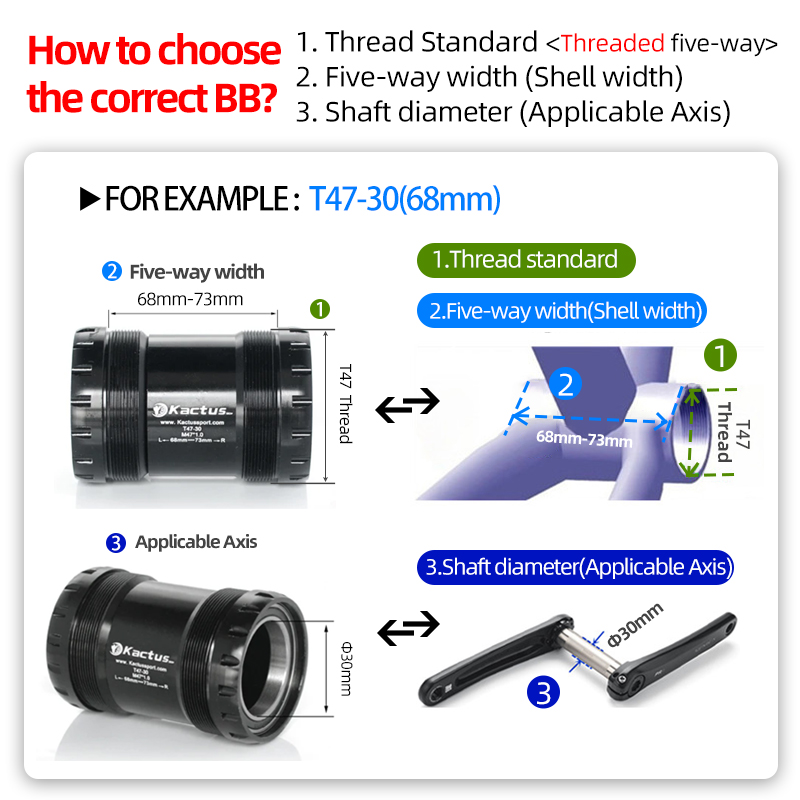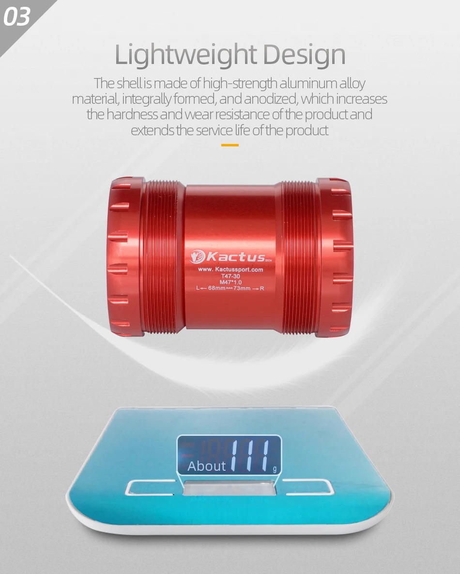KACTUS T47-30 Ceramic Bottom Bracket - 68/73mm Threaded Central Movement - for 30mm Spindle Cranks Bicycle Accessories