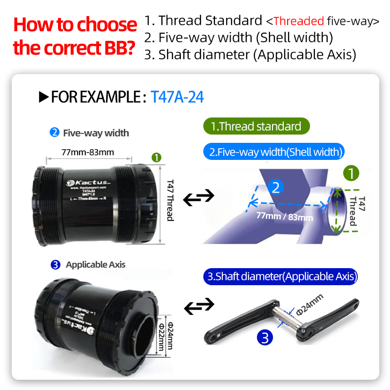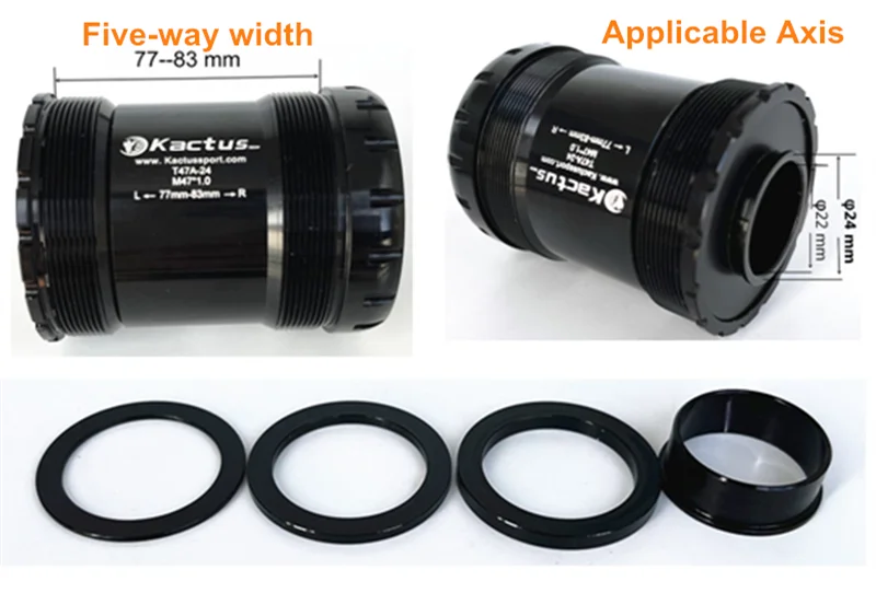 KACTUS T47A-24 Ceramic Bottom Brackets - Fit for Factor 77/83mm Asymmetric Shell - Fit for Shimano/SRAM GXP - Low Friction BB Bikes Accessories