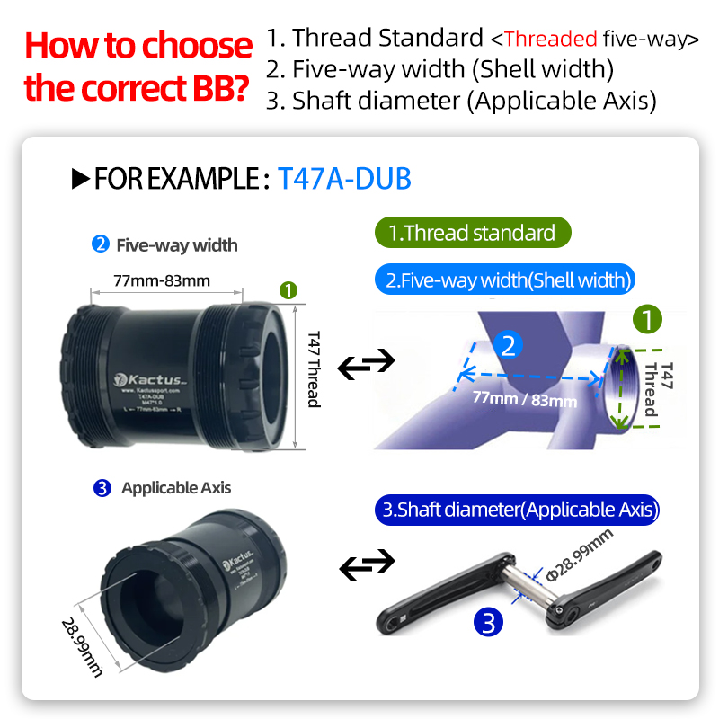 KACTUS T47A DUB Bottom Bracket Ceramic - for 77/83mm Threaded Bike Stand - Fit for SRAM DUB Cranks Bicycle Accessories