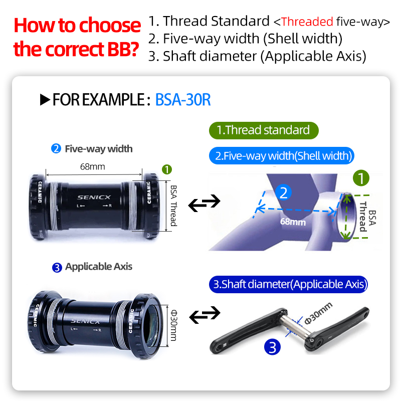 SENICX BSA30 Bicycle Bottom Bracket Ceramic BB 68mm Central movement for Road Suitable for SRAM Crankset Cycling Bike accessories
