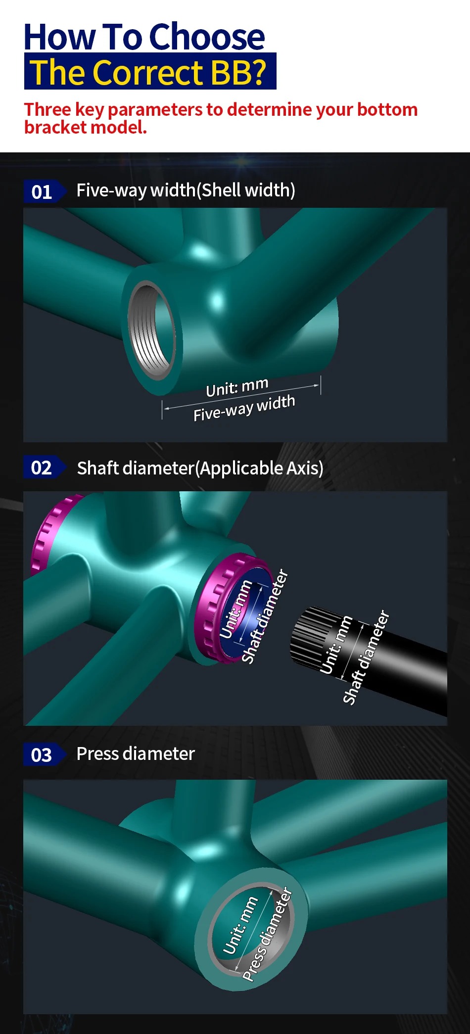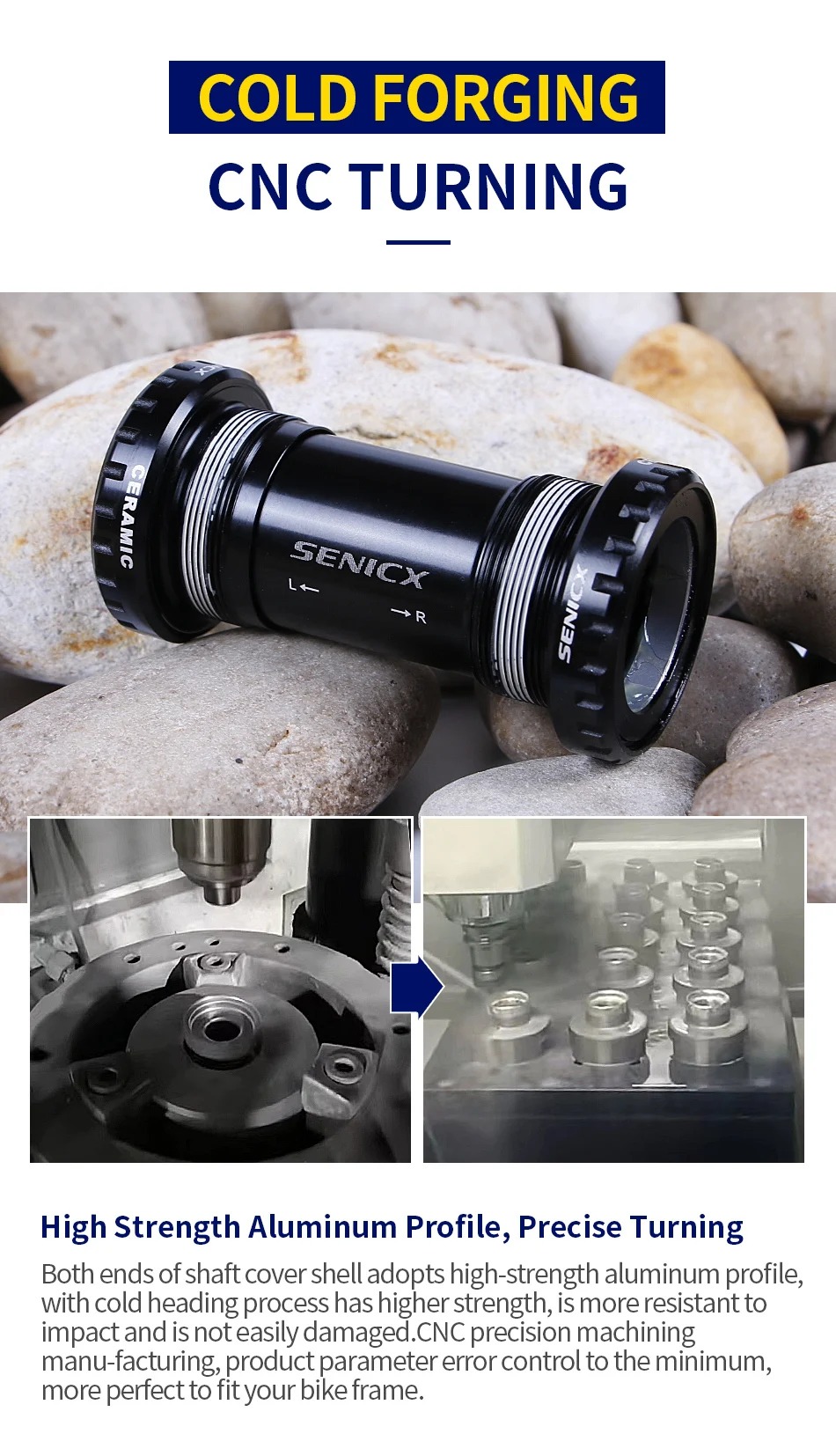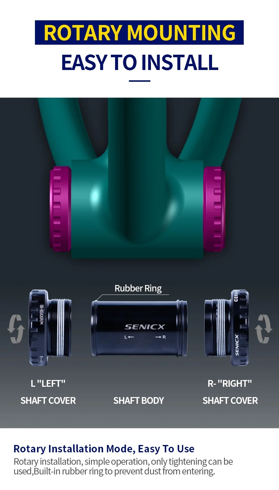 Both ends of shaft cover shell adopts high-strength aluminum profile, with cold heading process has higher strength, is more resistant to impact and is not easily damaged. CNC precision machining manu-facturing, product parameter error control to the minimum, more perfect to fityour bike frame.
