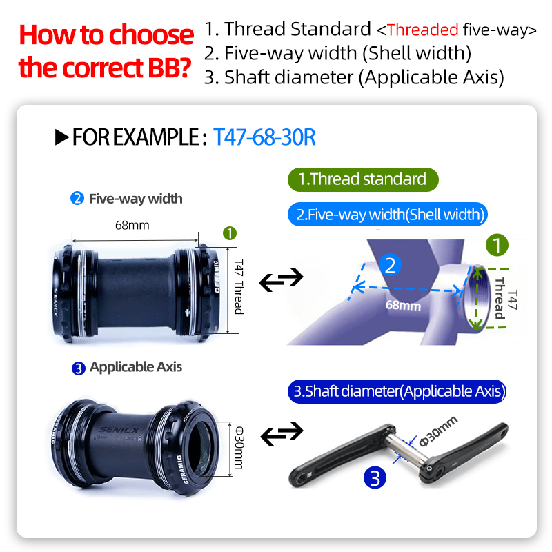 SENICX T47 Bottom Bracket 68mm Width Ceramic Bearing Central Movement Suitable for SRAM 30mm Axis Crankset road bike accessories